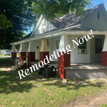 Our sweet little homestead. Great big yard with big trees surrounding a sweet bungalow with a wrap-around porch